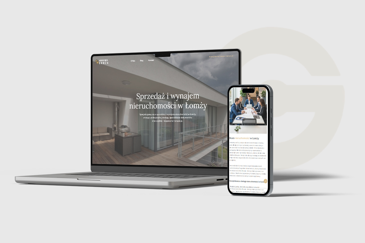 Prezentujemy realizację strony internetowej dla biura nieruchomości działającego w Łomży i okolicach.